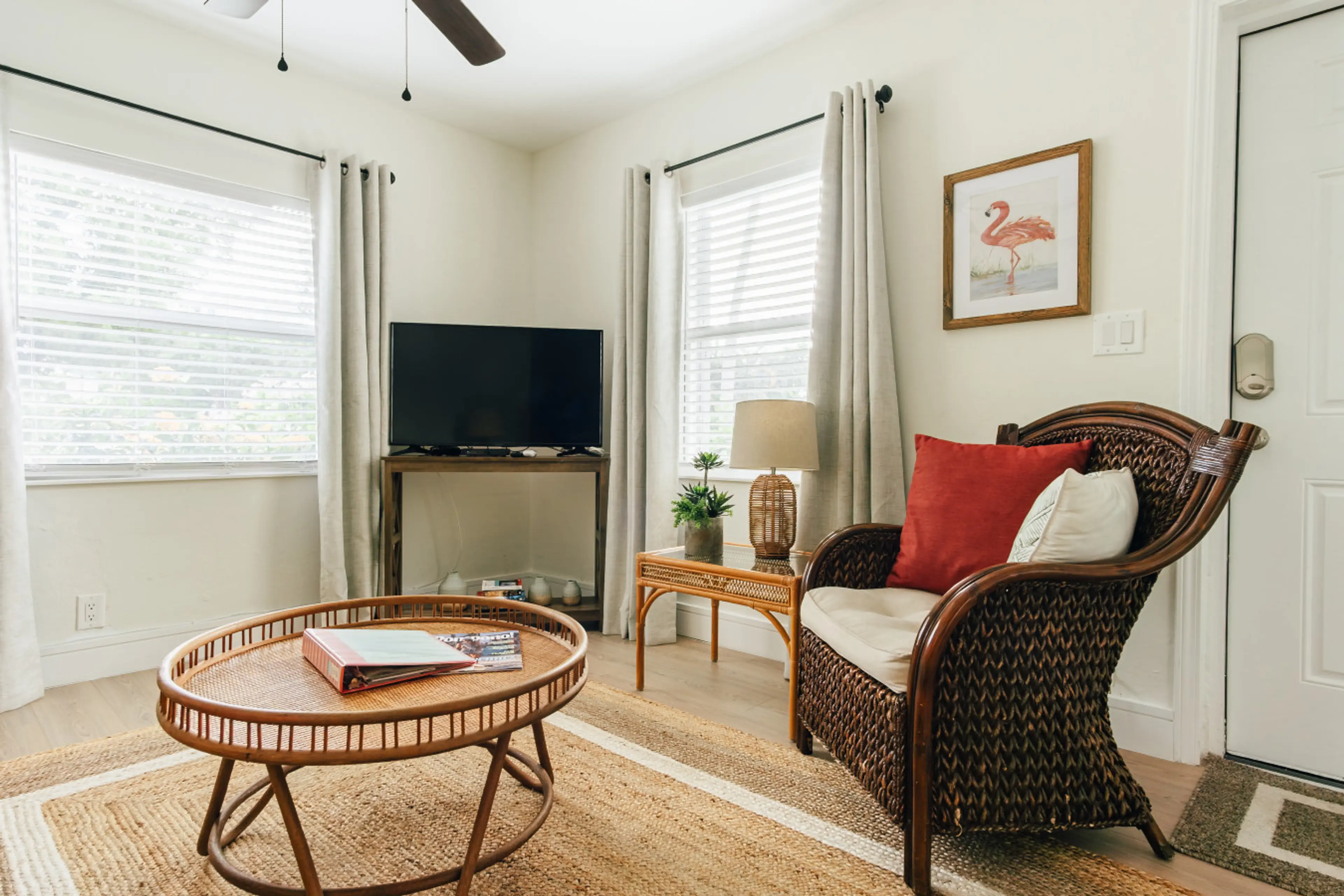 WE HIGHLY RECOMMEND THESE APARTMENTS. Our apartment was perfect! It was part of a duplex, almost as private as a free-standing home. Several buildings surround a center garden filled with blooms and butterflies.Very comfortable bed.Super shower.Immaculate throughout.More kitchen items than we could ever use.Walk to the beach, stores, restaurants.The garden was an ideal place to enjoy good weather and plan our next adventure. Amy was almost immediately available (lives nearby) because we did not understand the TV options (which were MANY). Amy was incredibly helpful and friendly and never intrusive.The "dining room" was more than most apartments offer: comfortable, useful and convenient. Pleasant neighborhood for walking, running, strolling and chatting. Beautiful homes (the ones on the intercoastal waterway were stunning mansions). And all for the price of a local hotel room. Kick back and relax.